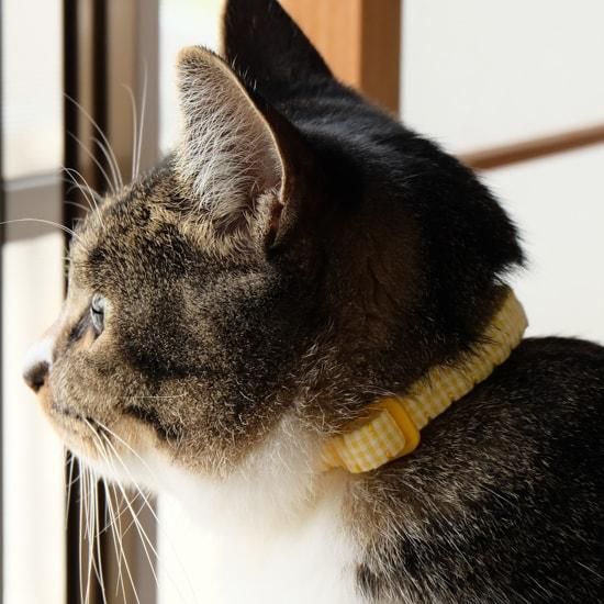 大切な猫ちゃんが使うものだから、上質な材料を選んで、ひとつひとつ手づくりしています。首輪の表がコットン、裏がメリノウールになっています。ミシンは使わず、ねこの首にやさしく馴染むように全て手縫いしています。MADE IN JAPAN